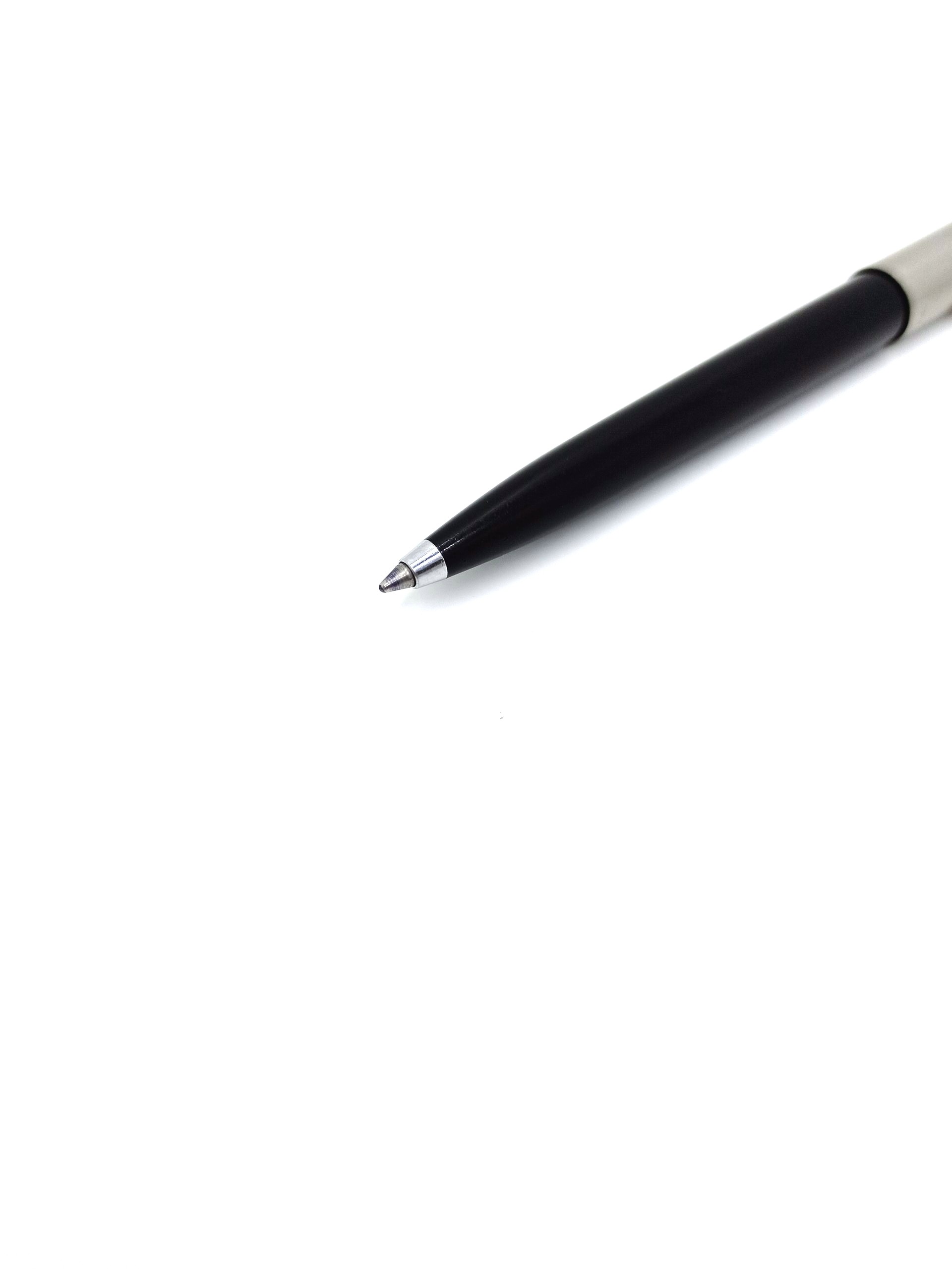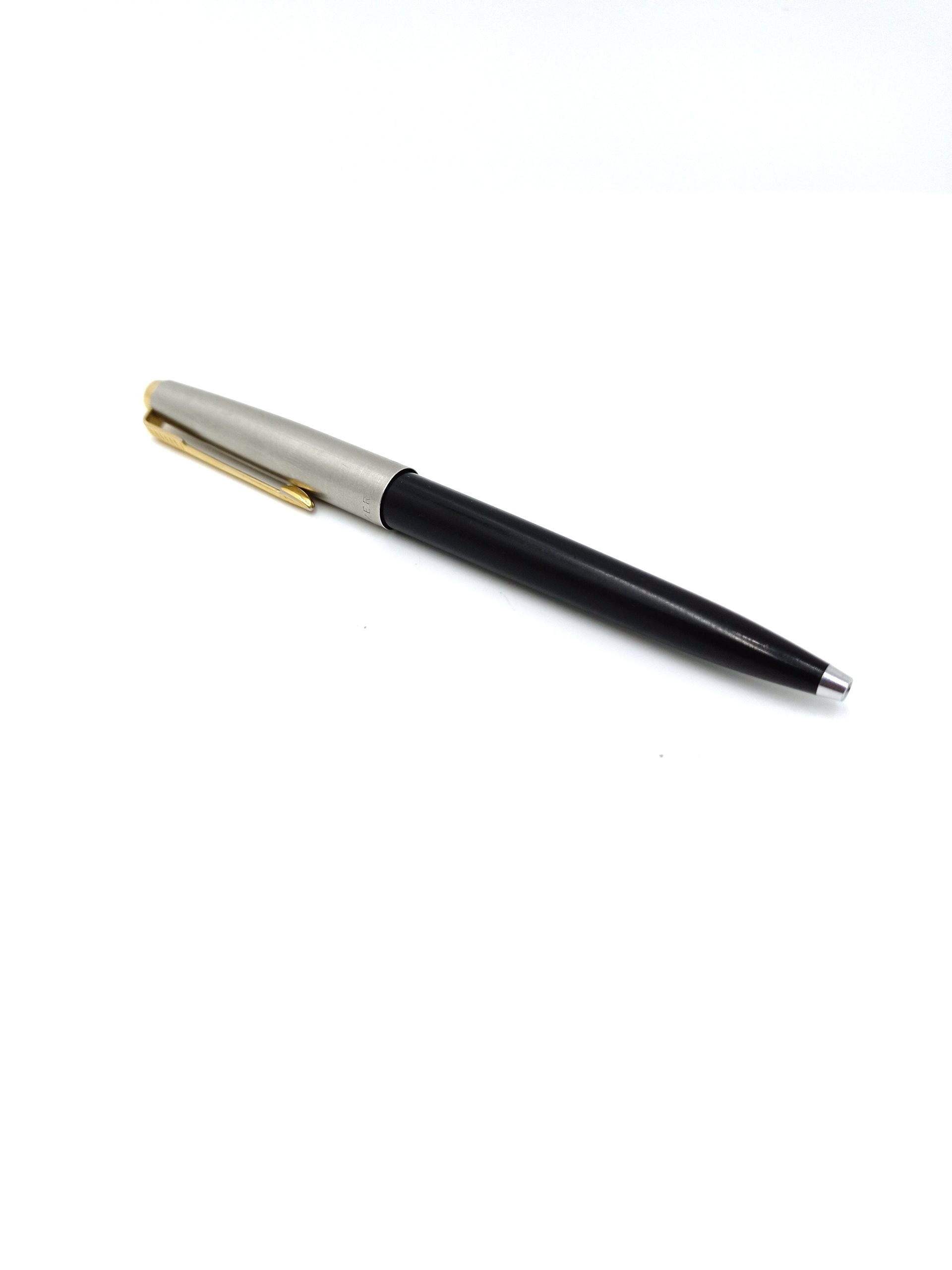قلم جاف من اصدارات شركة باركر العالمية , من المعدن مطلي بالبلاتينيوم واللاكر الاسود