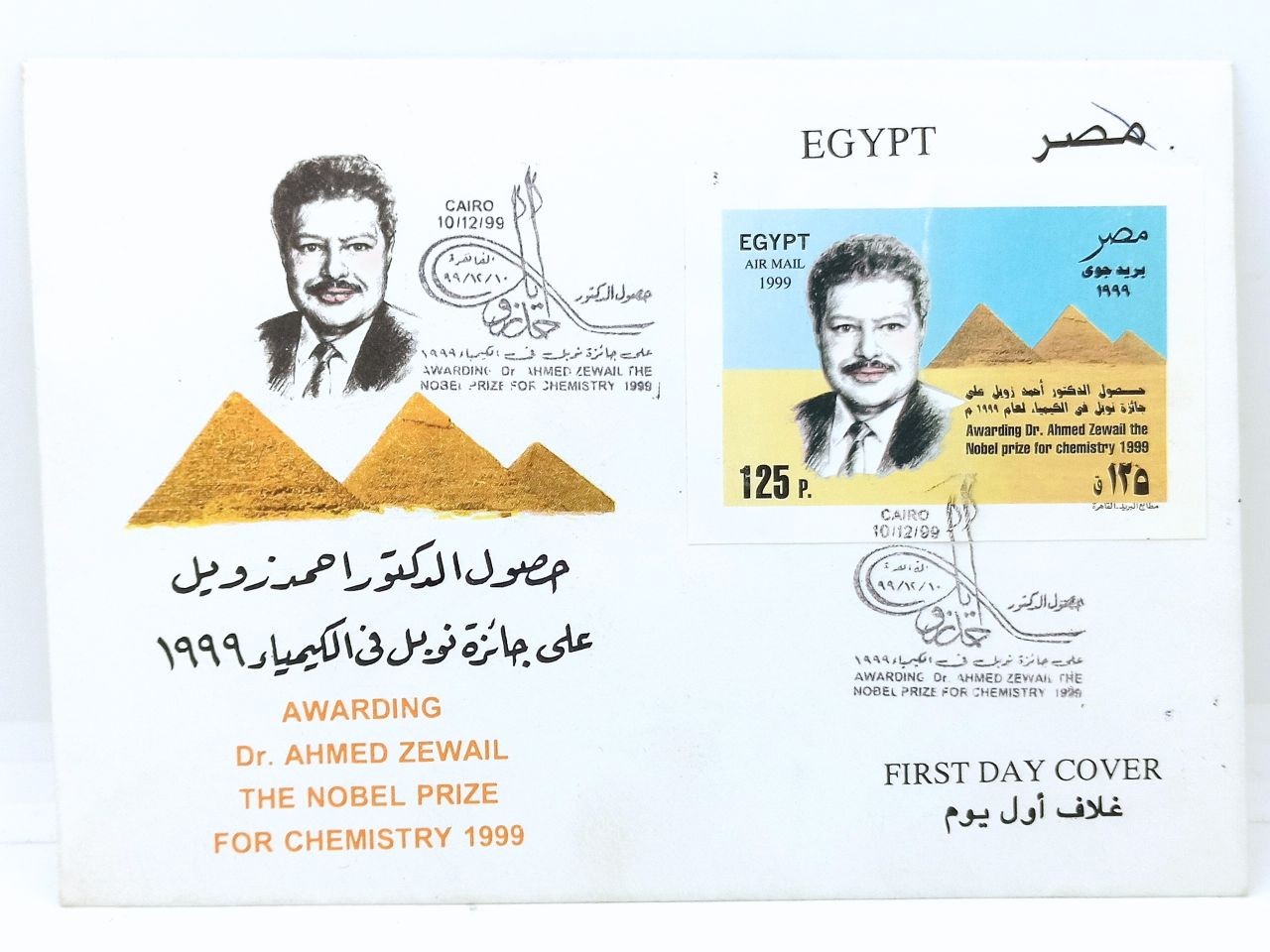 - الوصف المجموعة بها ظرف واحد يحتوي علي بطاقة واحده وفئتها : مائة وخمسة وعشرون قرشا ,حصول الدكتور احمد زويل علي جائزة نوبل في الكيمياء 1999