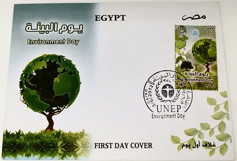 المجموعة عبارة عن ظرف واحد يحتوي علي طابع واحد وفئته : اثنان جنية , يوم البيئة