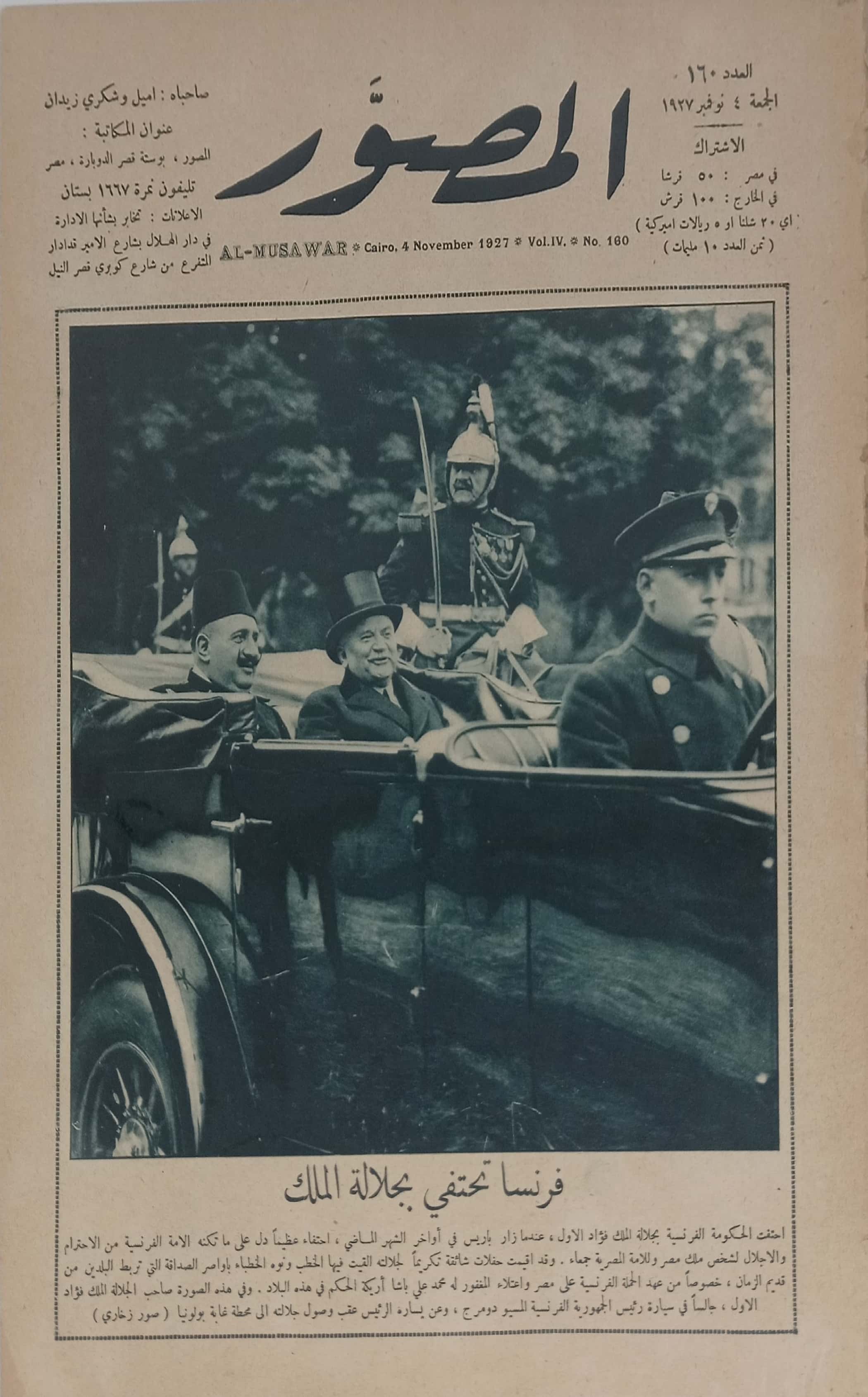 - الوصف King Fouad's visit to France and his photo with French President Doumerge