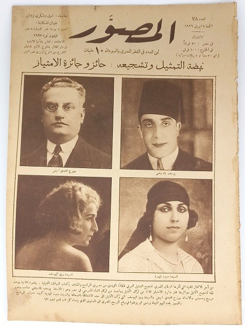 - الوصف Several pictures of famous actors such as Youssef Wahbi, George Abyad and Rose El Youssef