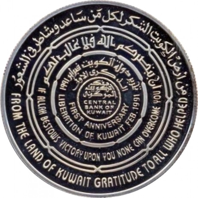 مِن أرض الكويت الشكر لكل مَن سَاعد وشاطر فى الشعُور ان ينصركم الله فلا غالب لكم تحرير دولة الكويت فبراير ١٩٩١ الذكرى الاولى بنك الكويت المركزى CENTRAL BANK OF KUWAIT FIRST ANNIVERSARY LIBERATION OF KUWAIT FEB. 1991 IF ALLAH BESTOWS VICTORY UPON YOU NONE CAN OVERCOME YOU FROM THE LAND OF KUWAIT GRATITUDE TO ALL WHO HELPED