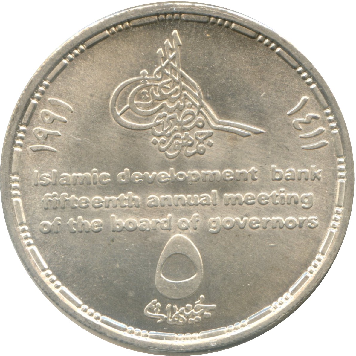 جمهورية مصر العربية - المؤتمر السنوى الخامس عشر لمجلس محافظى البنك الاسلامى للتنمية - خمسة جنيهات - 1411 -1991