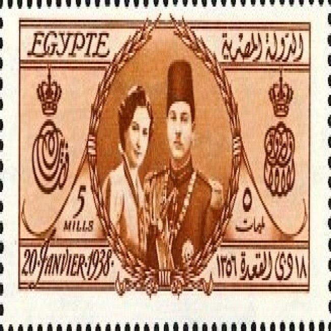 - المناسبة حفل زفاف الملك فاروق والملكة فريدة