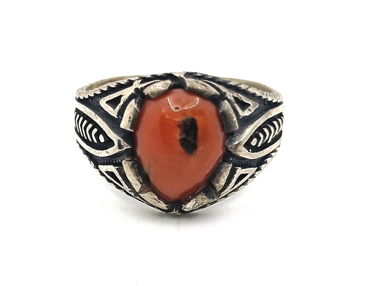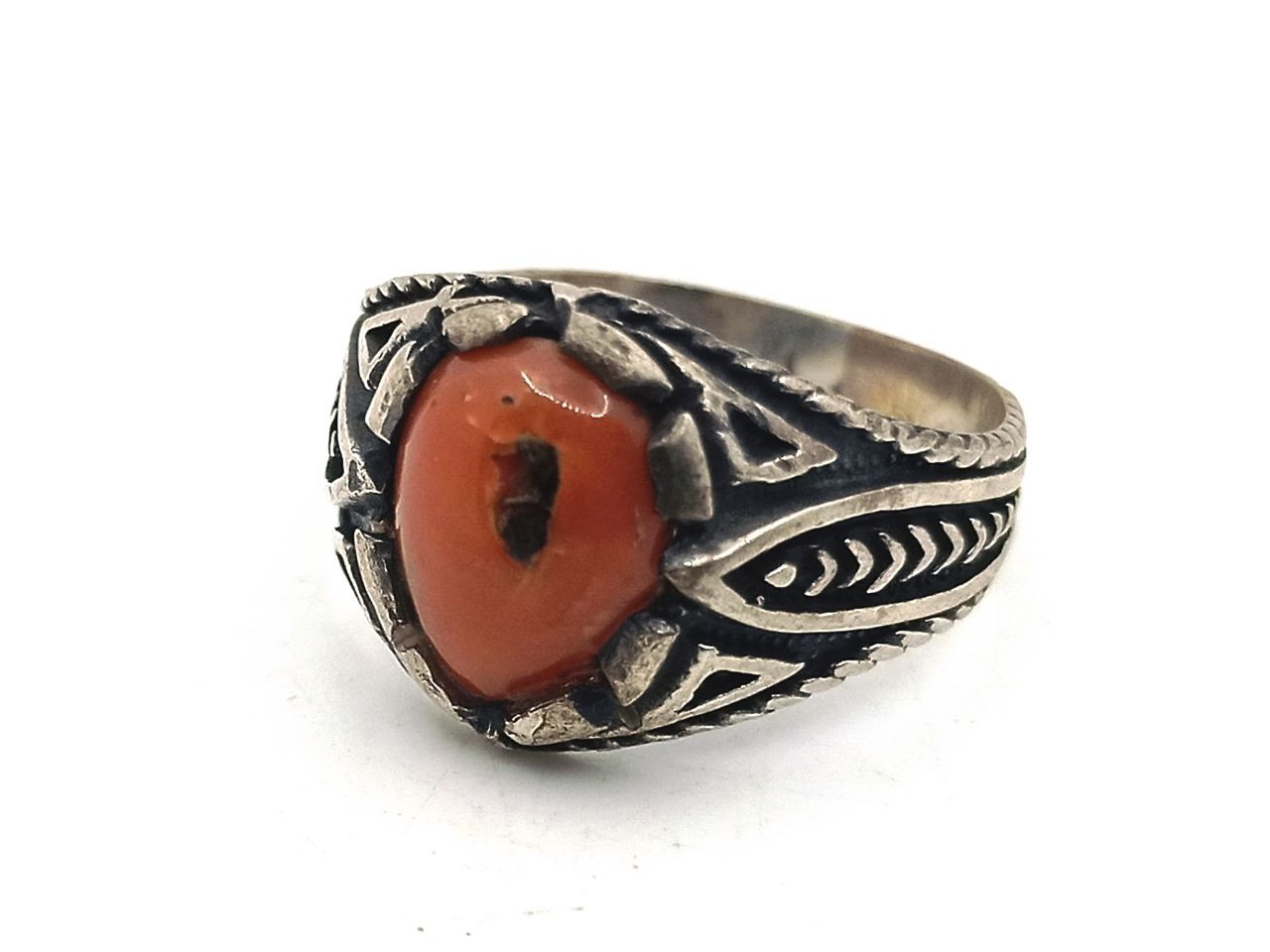 925 Italian silver coral stone Iranian ringweight : 6.5 g