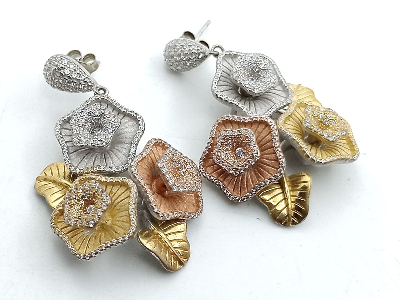 Rose shaped silver earring