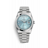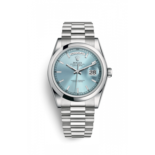 Model case Oyster, 36 mm, white gold Oyster architecture Monobloc middle case, screw-down case back and winding crown Diameter 36 mm Material 18 ct white gold Bezel Fluted Winding crown Screw-down, Twinlock double waterproofness system Crystal Scratch-resistant sapphire, Cyclops lens over the date Water-resistance Waterproof to 100 metres / 330 feet
