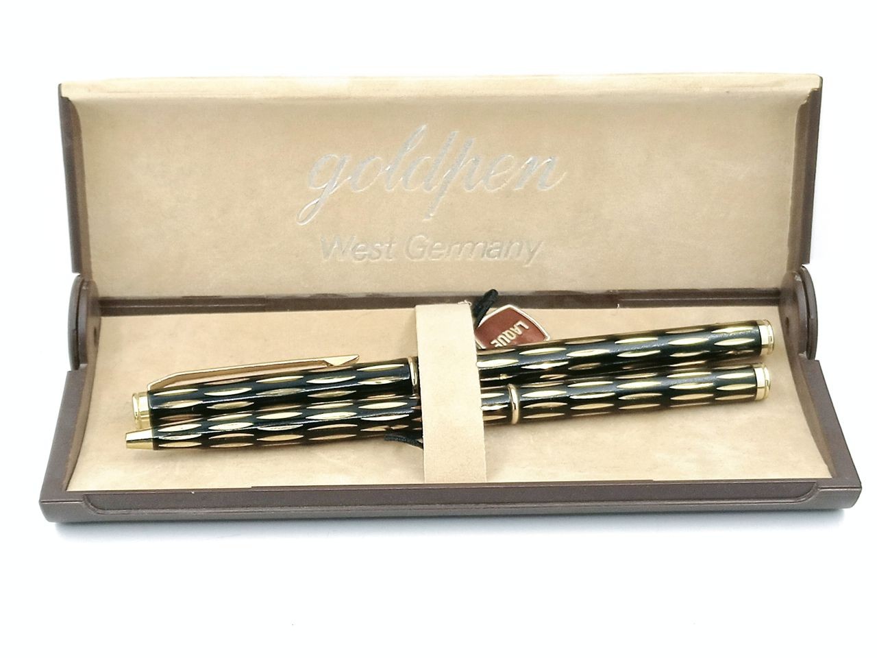 GOLDHEN set of 1 fountain pen and 1 ballpoint pen The set is coated with black and gold enamel German made