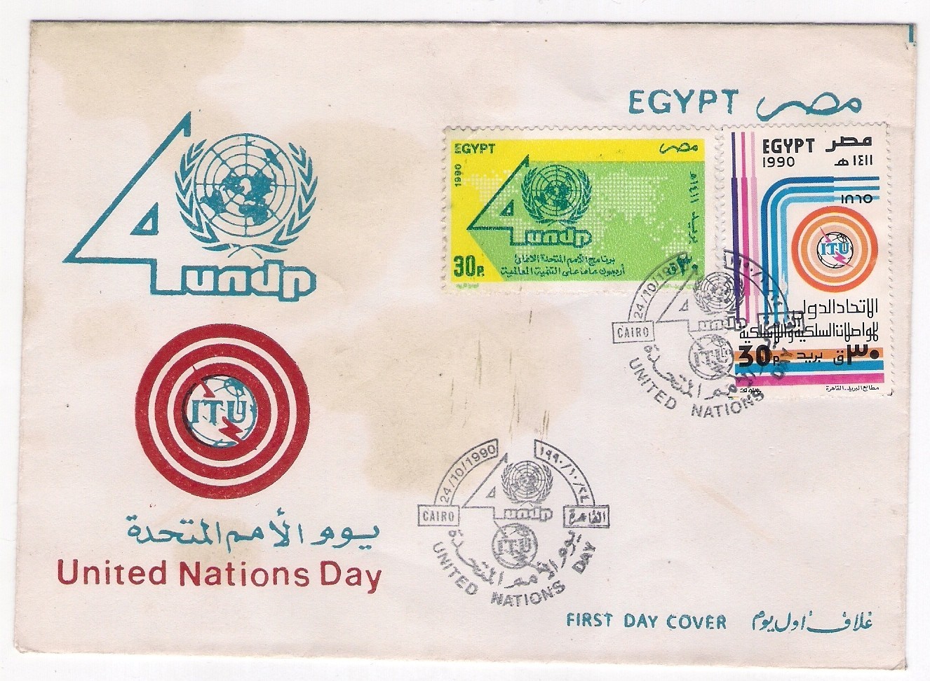 The group has one envelope containing three stamps and their category : Ten piasters , United Nations Day