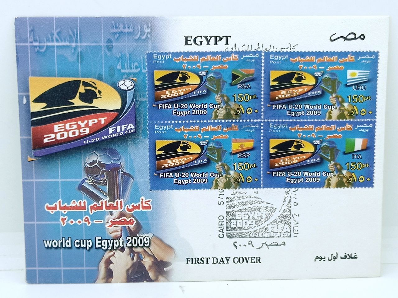- Description المجموعة بها اربعة اظرف يحتوي كلا منهم علي اربعة طوابع مختلفة وفئتهم : مائة وخمسون قرشا , كأس العالم للشباب
