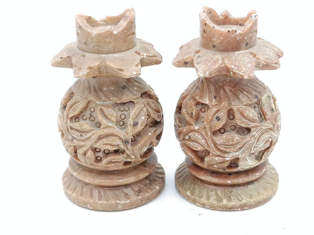 Candlestick from jade Weight: 320 g per piece Height: 9 cm